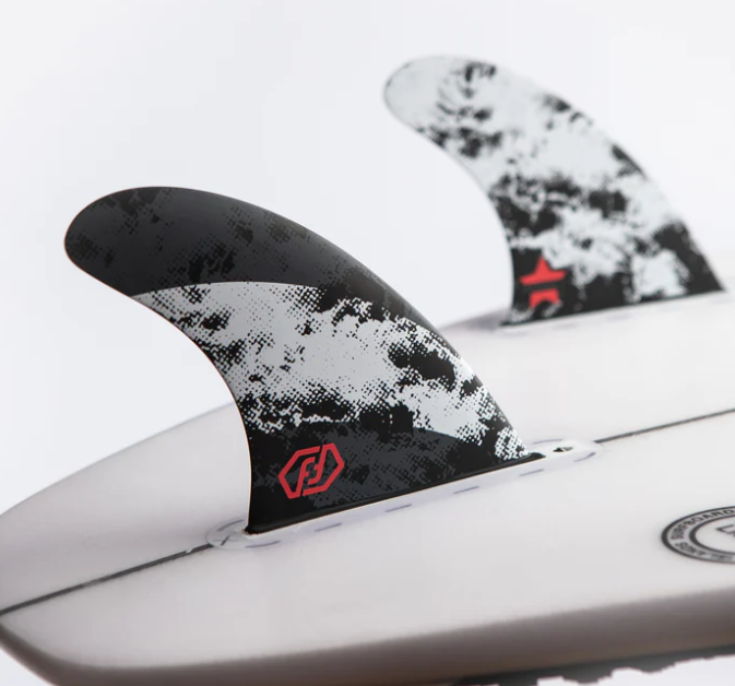 Considéré comme une construction de première qualité, les ailerons ont été conçus selon les lignes directrices de Jorgann Couzinet afin de fournir de la drive et la capacité de dessiner des virages plus longs et arqués. Conçue pour une bonne conduite sur le fond et pour effectuer des virages plus longs sur les vagues ouvertes. Les ailerons latéraux assurent la tenue, le petit gabarit plus droit à l’arrière maintient le tail release. Un aileron idéal pour les vagues open face, down-the-line, particulièrement efficace sur les point break et reef breaks.